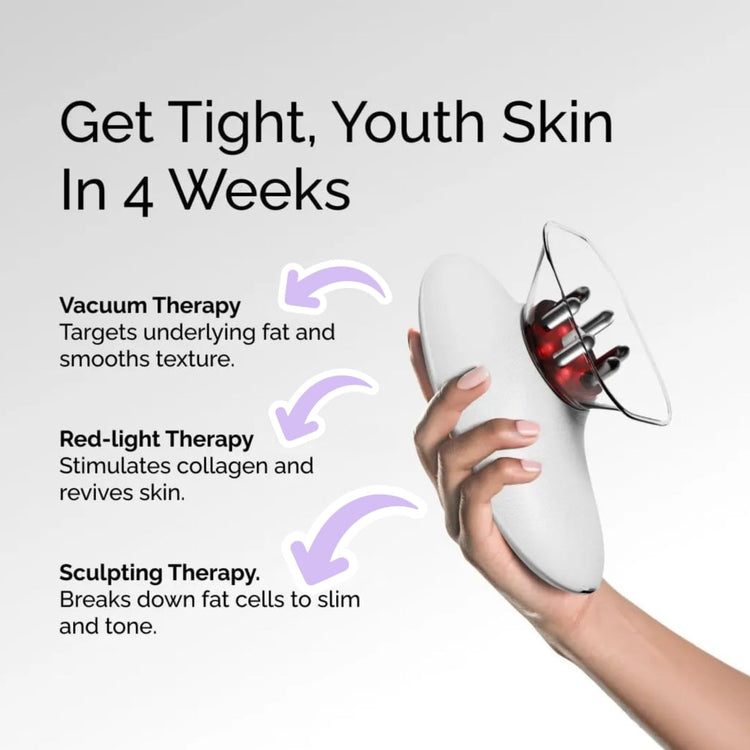 Experience vacuum suction and red-light therapy from home. Feel firmer, smoother skin in just weeks with gentle, personalized intensity.